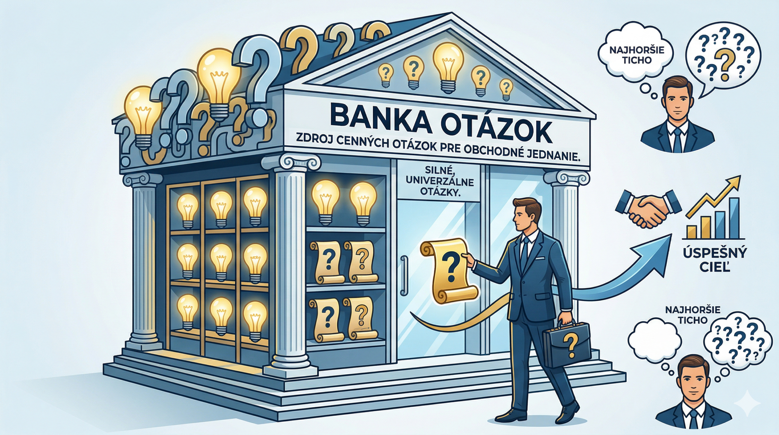- Otázky, ktoré odhalia motiváciu, kritériá, riziká a rozhodovací proces.